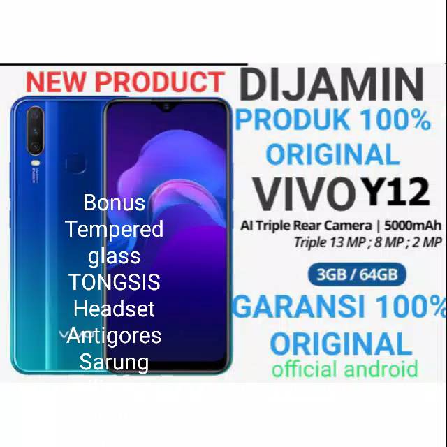 Vivo Y12 3gb 32gb Garansi Resmi Bnib 5000mah Battery Triple Camera