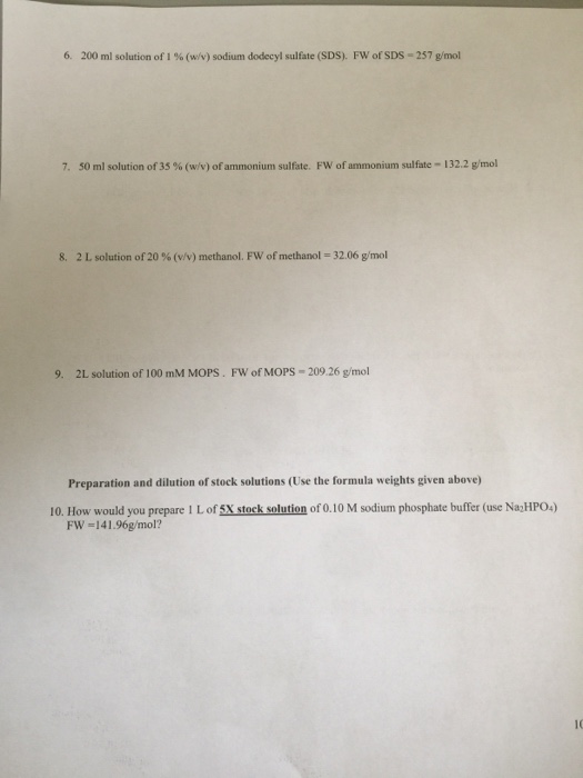 Solved 6 200 Ml Solution Of 1 Wv Sodium Dodecyl Sulf Chegg Com